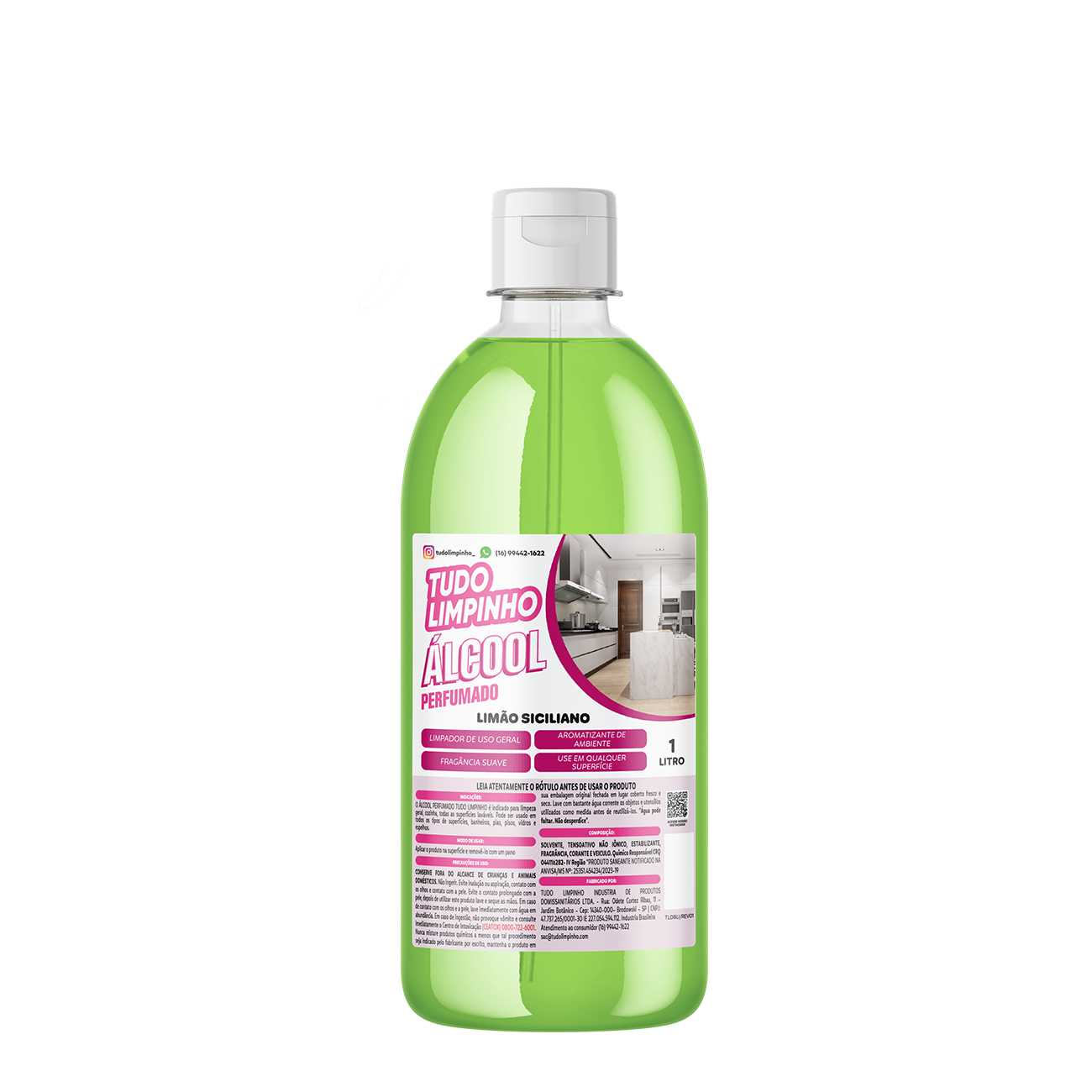 Este álcool perfumado possui composição que une solvente, tensoativo não iônico, espumante e fragrância de limão siciliano. Sua embalagem plástica contém 1 litro de produto, ideal para limpeza e refrescância em ambientes diversos. De uso simples, é indicado para limpeza leve e aromatização ao mesmo tempo.